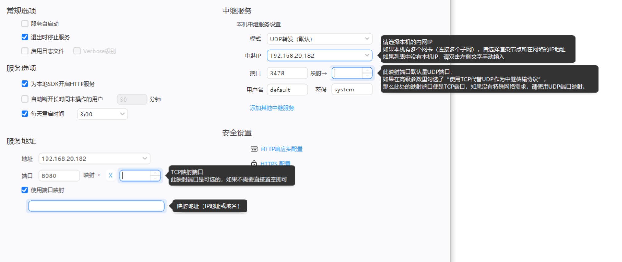 路由器端口映射完成后,在CloudMaster服务配置界面,勾选端口映射,填写相应的映射端口。