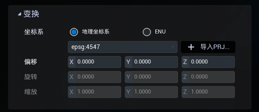 坐标系:选择工程的坐标系,或者加载一个PRJ坐标文件。支持平面投影坐标系和球面地理坐标系。